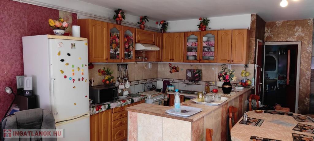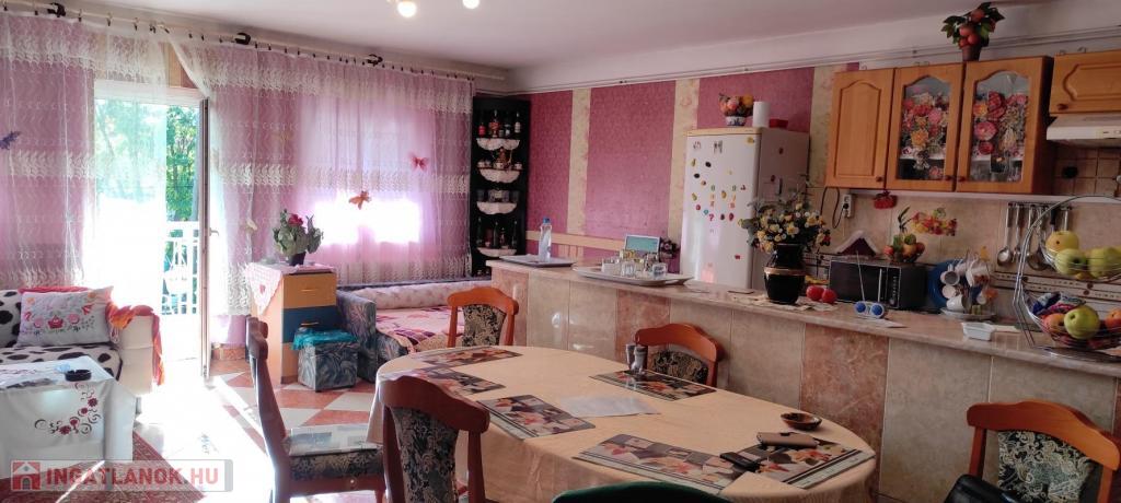 FŐLDSZINT /94 nm): "amerikai konyhás" NAPPALI-/55 nm-/,kamra,fürdő+WC és grdrob.